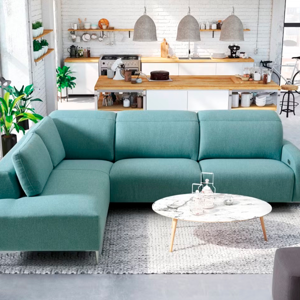 - Rinconeras en L o en U: aprovechan mejor el espacio y crean zonas de conversación.